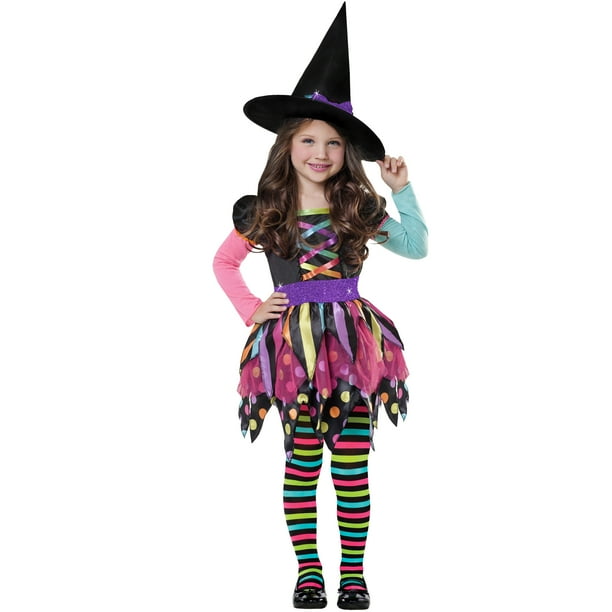 Way To Celebrate Missmatch Witch Girl S Halloween Fancy Dress Costume For Child M Walmart Com